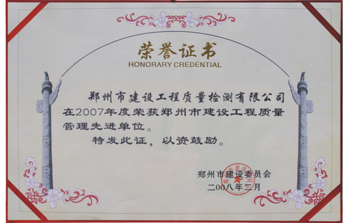 喜訊!我司榮獲2023年度鄭州市城鄉建設局工程檢測先進單位